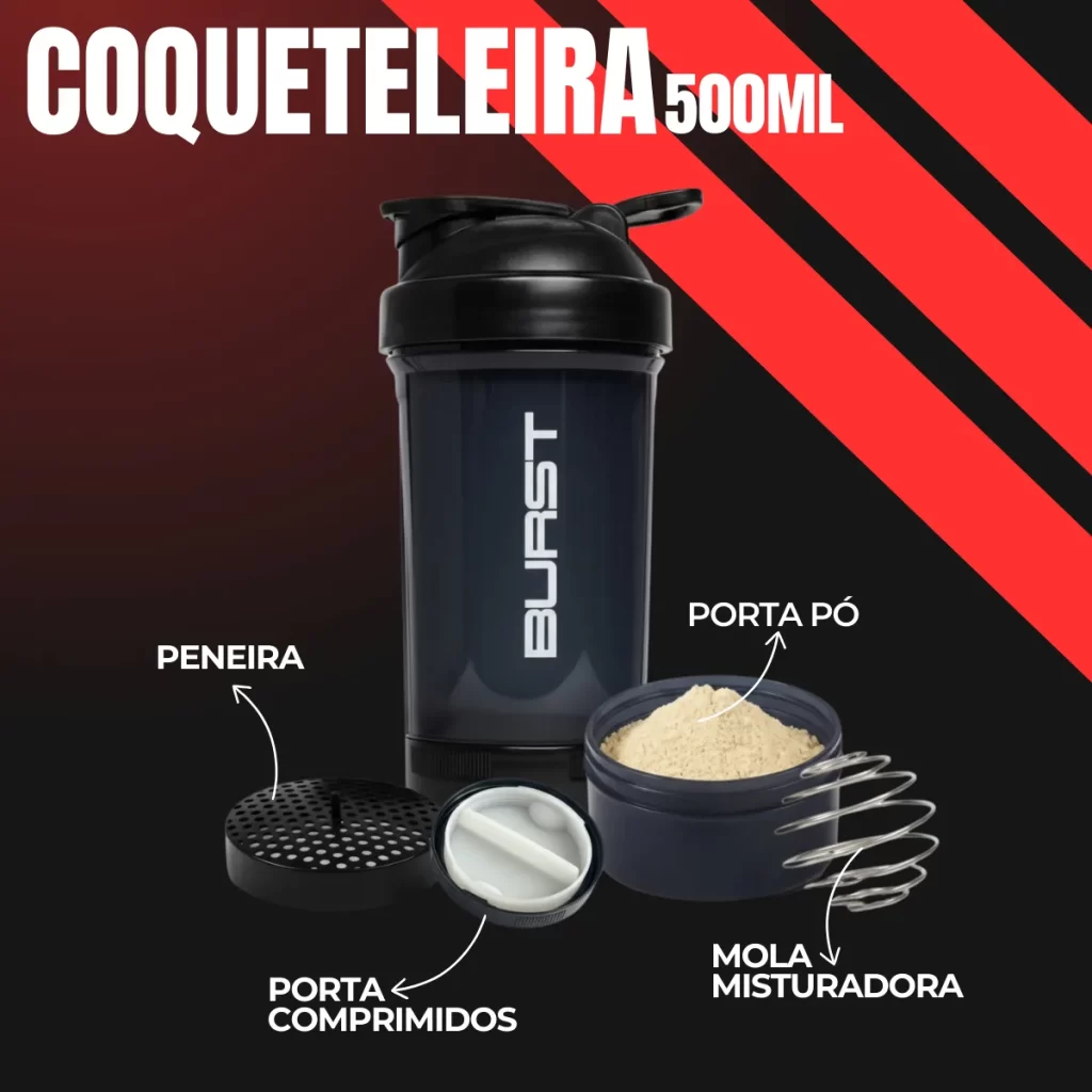 Coqueteleira Shaker Academia Compartimento Suplementos Fit 500ml Burst Shakeira Masterheart®